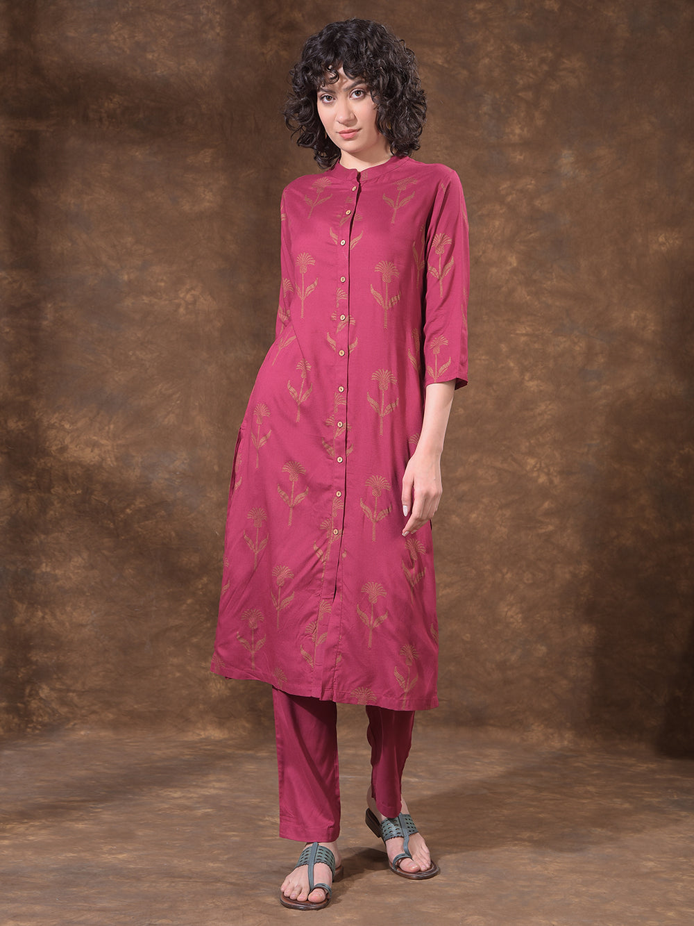 MISS FOREVER MEHROON PRINTED SUMMER KURTI WITH PLAZO