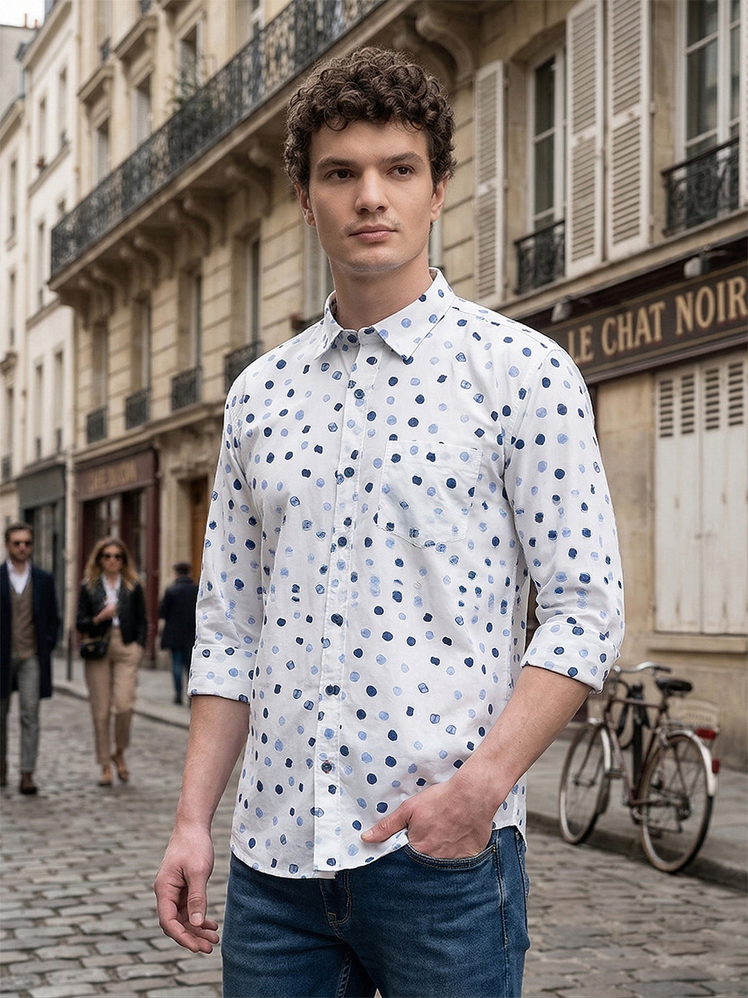 DONLAY WHITE PRINTED SLIM-FIT CASUAL SHIRT
