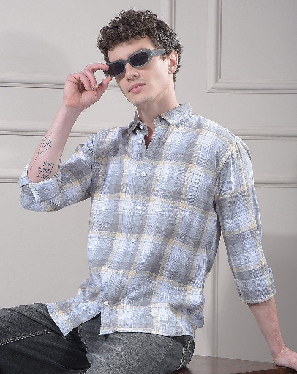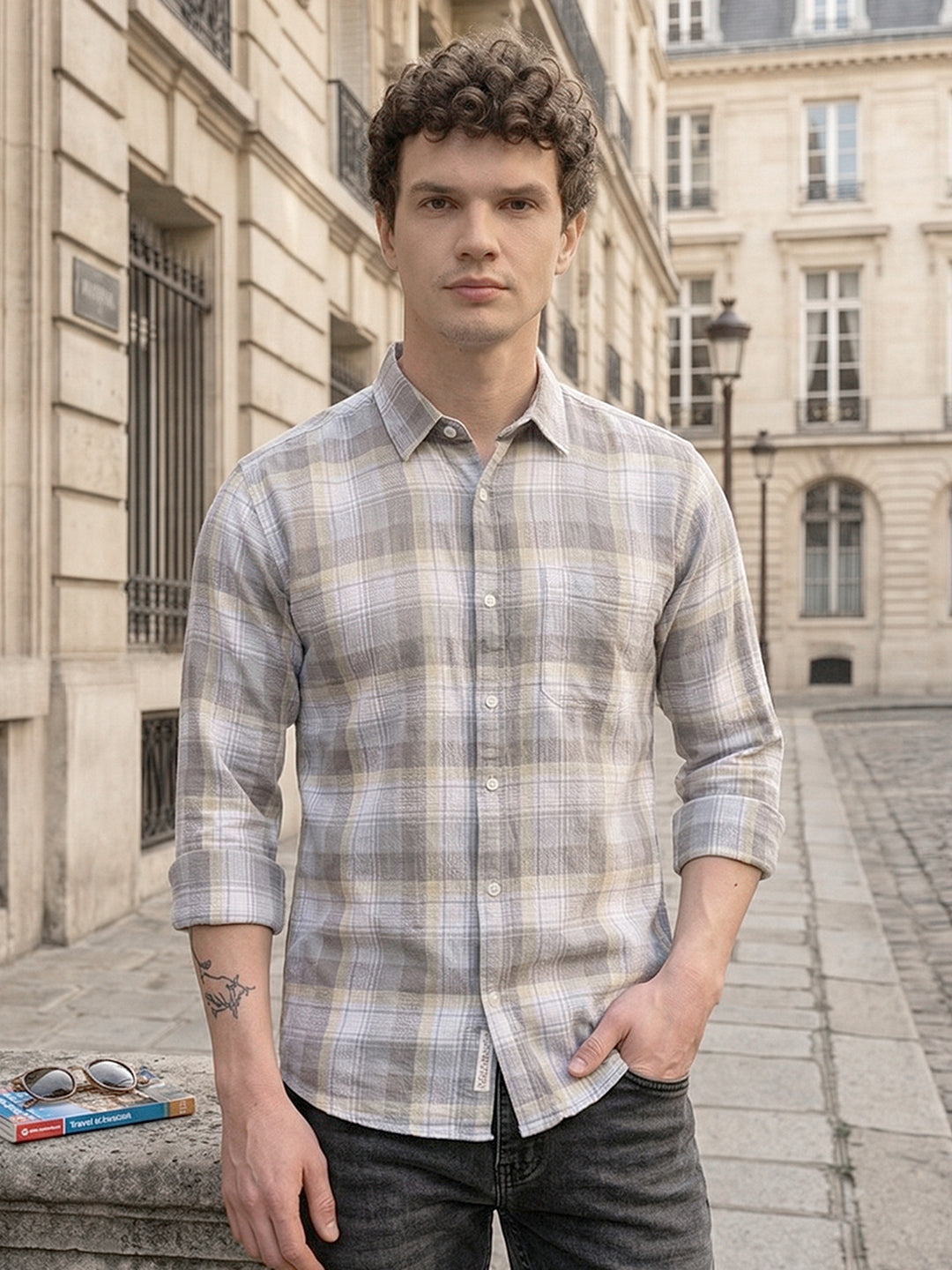 DONLAY GREY CHECKED SLIM-FIT CASUAL SHIRT