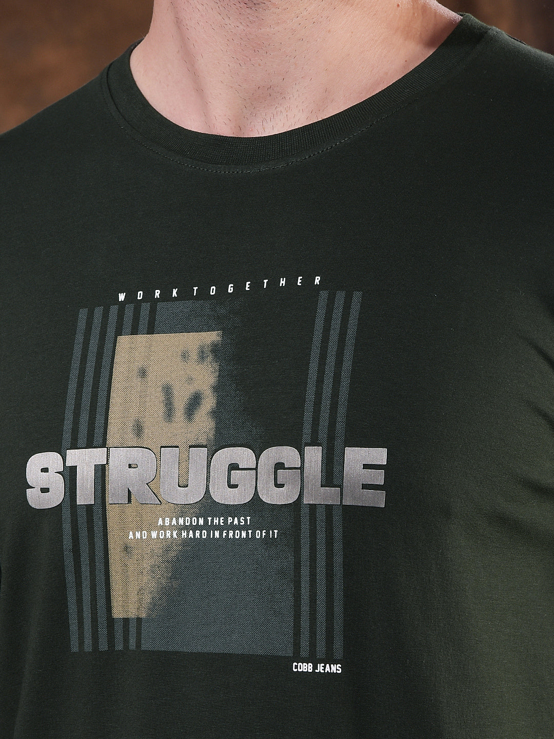 cobb bottle green printed round neck t-shirt