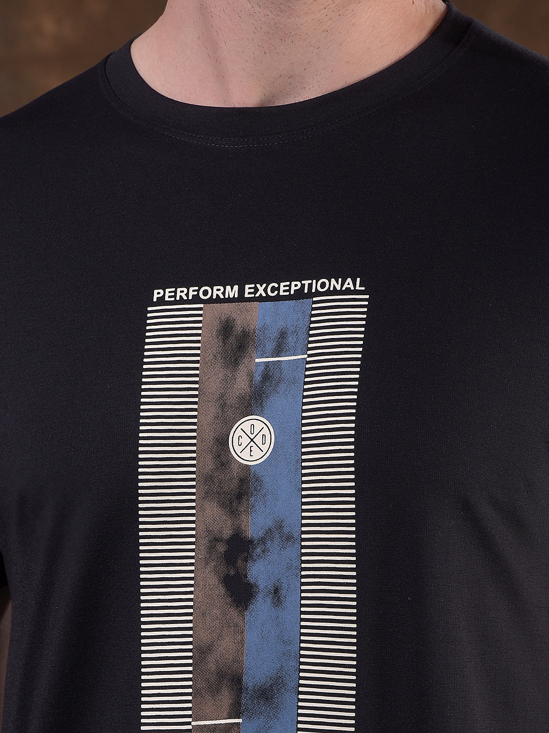 COBB BLACK PRINTED ROUND NECK T-SHIRT