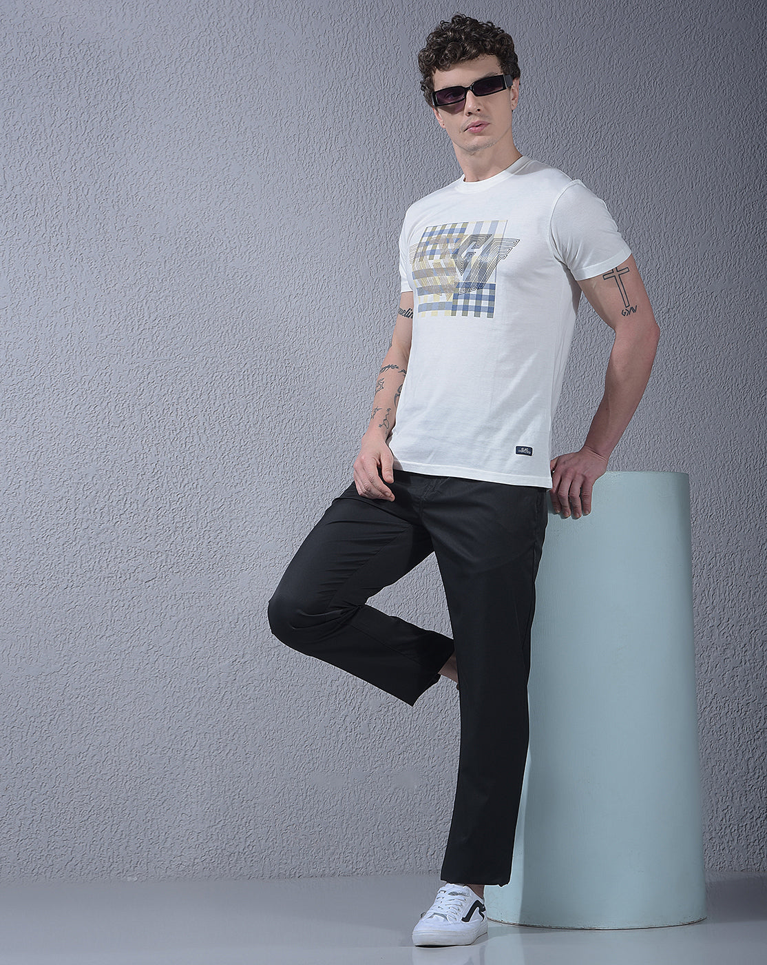COBB WHITE PRINTED ROUND NECK T-SHIRT