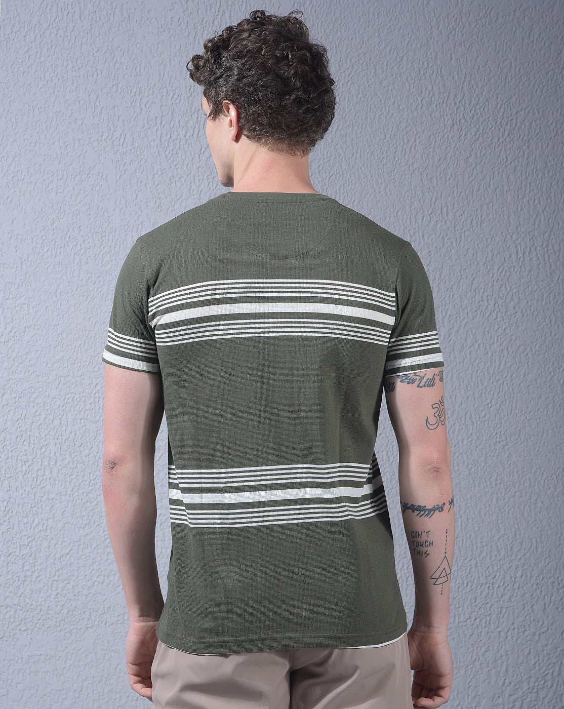 cobb olive striped round neck t-shirt