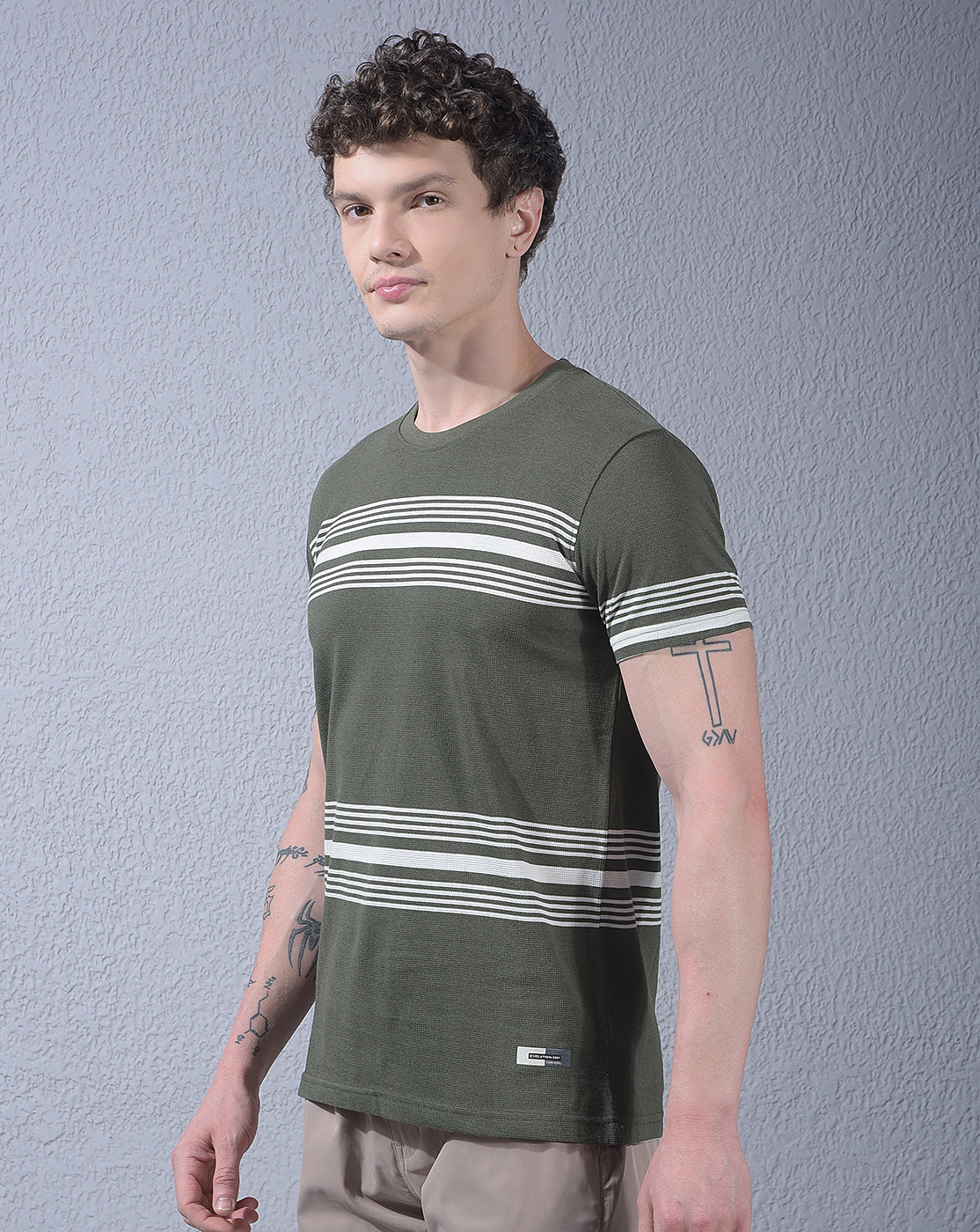 COBB OLIVE STRIPED ROUND NECK T-SHIRT