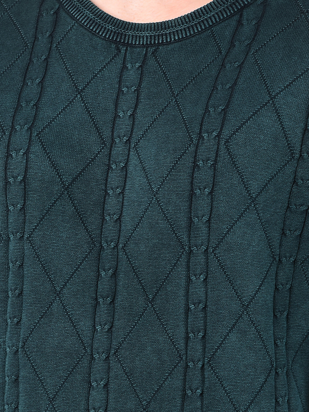 COBB BOTTLE GREEN SELF-DESIGN ROUND NECK SWEATER