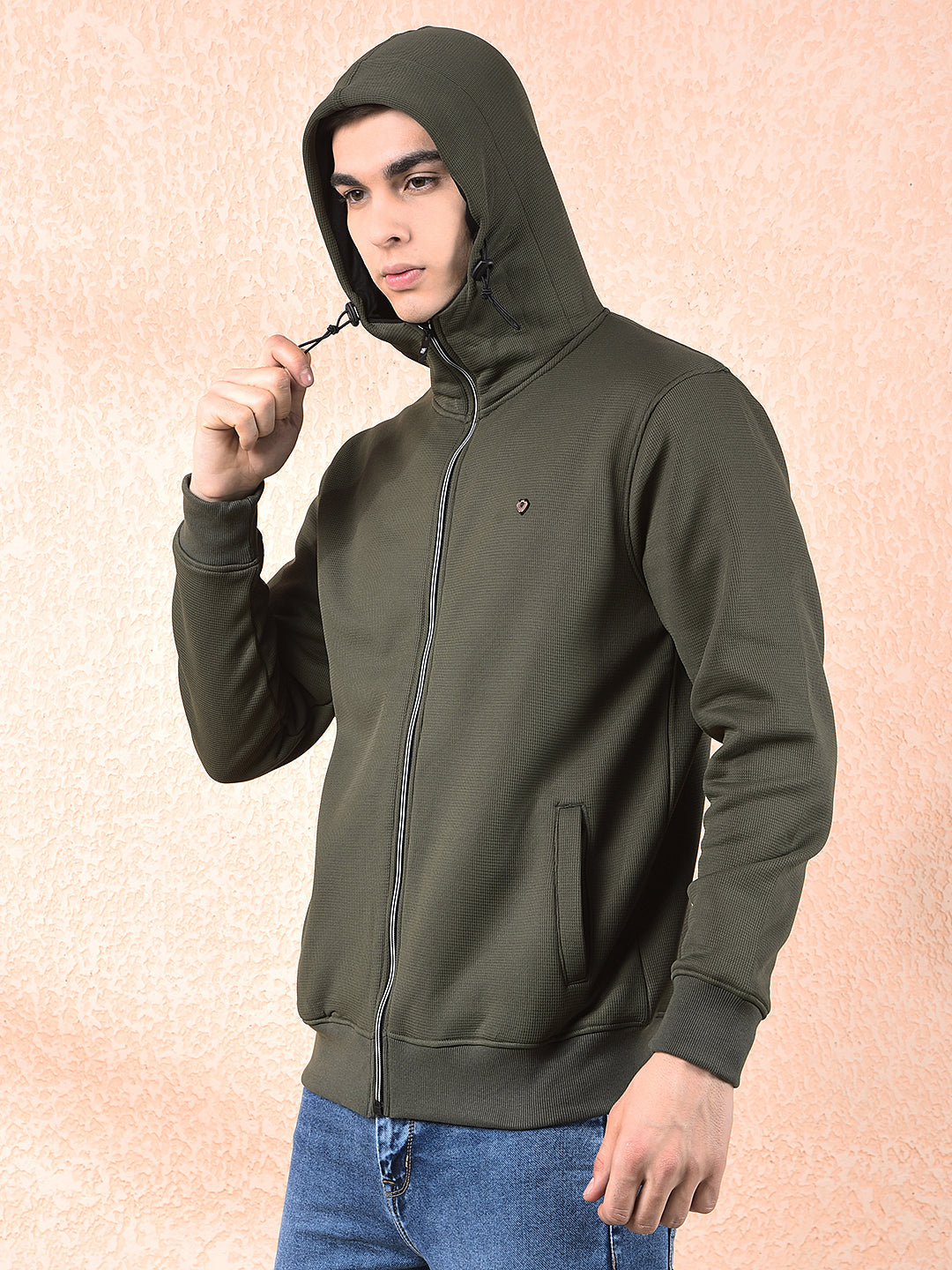 Redefine casual comfort with COBB Solid Olive Zip-Up Hooded Sweatshirt β€” sleek, warm, and effortlessly stylish.