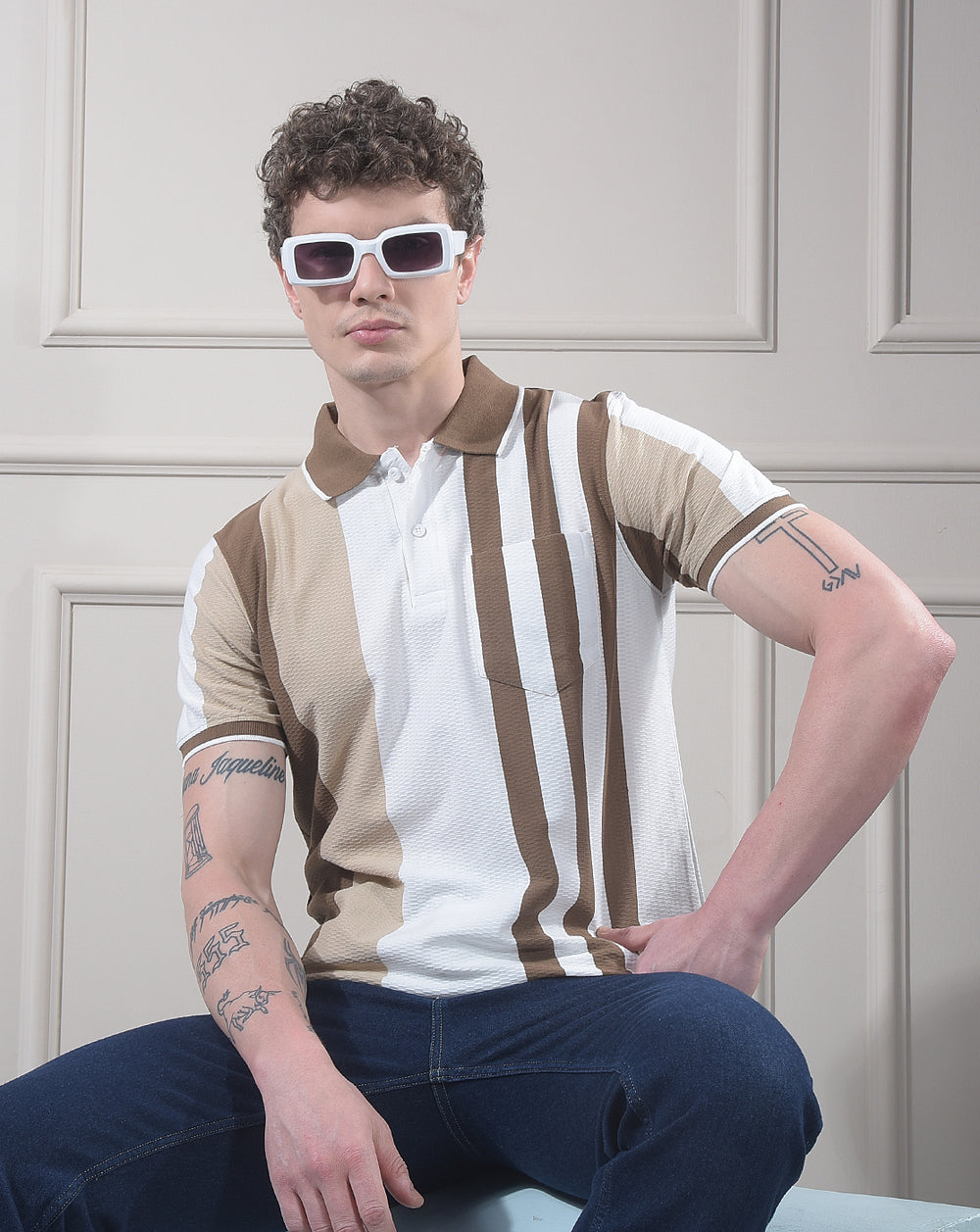 COBB WHITE STRIPED POLO NECK T-SHIRT