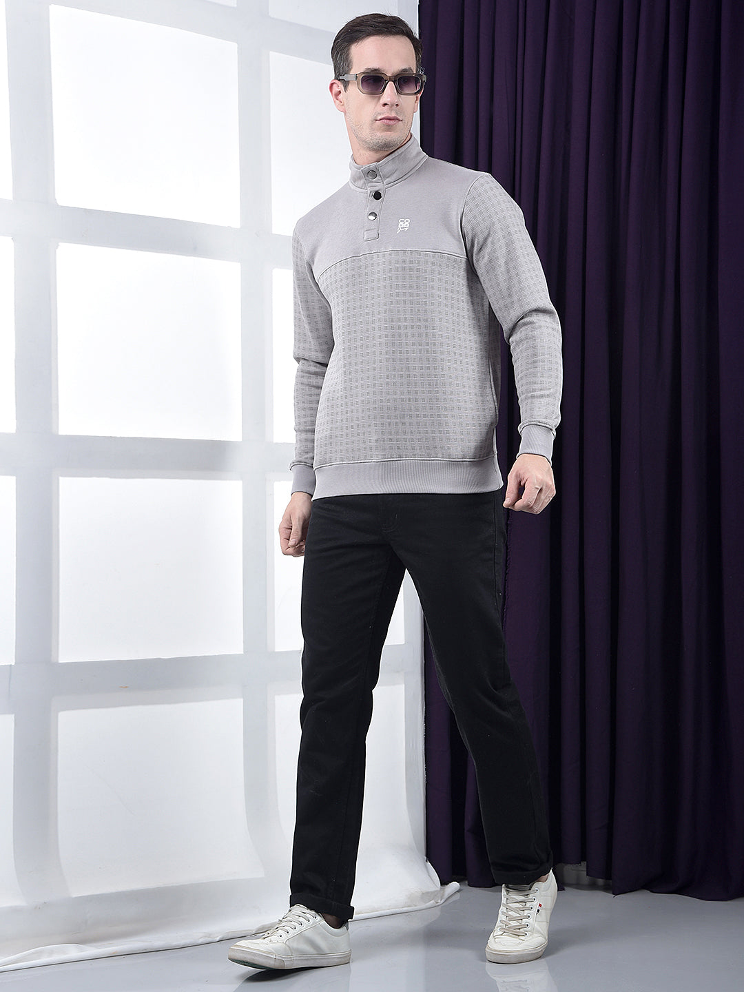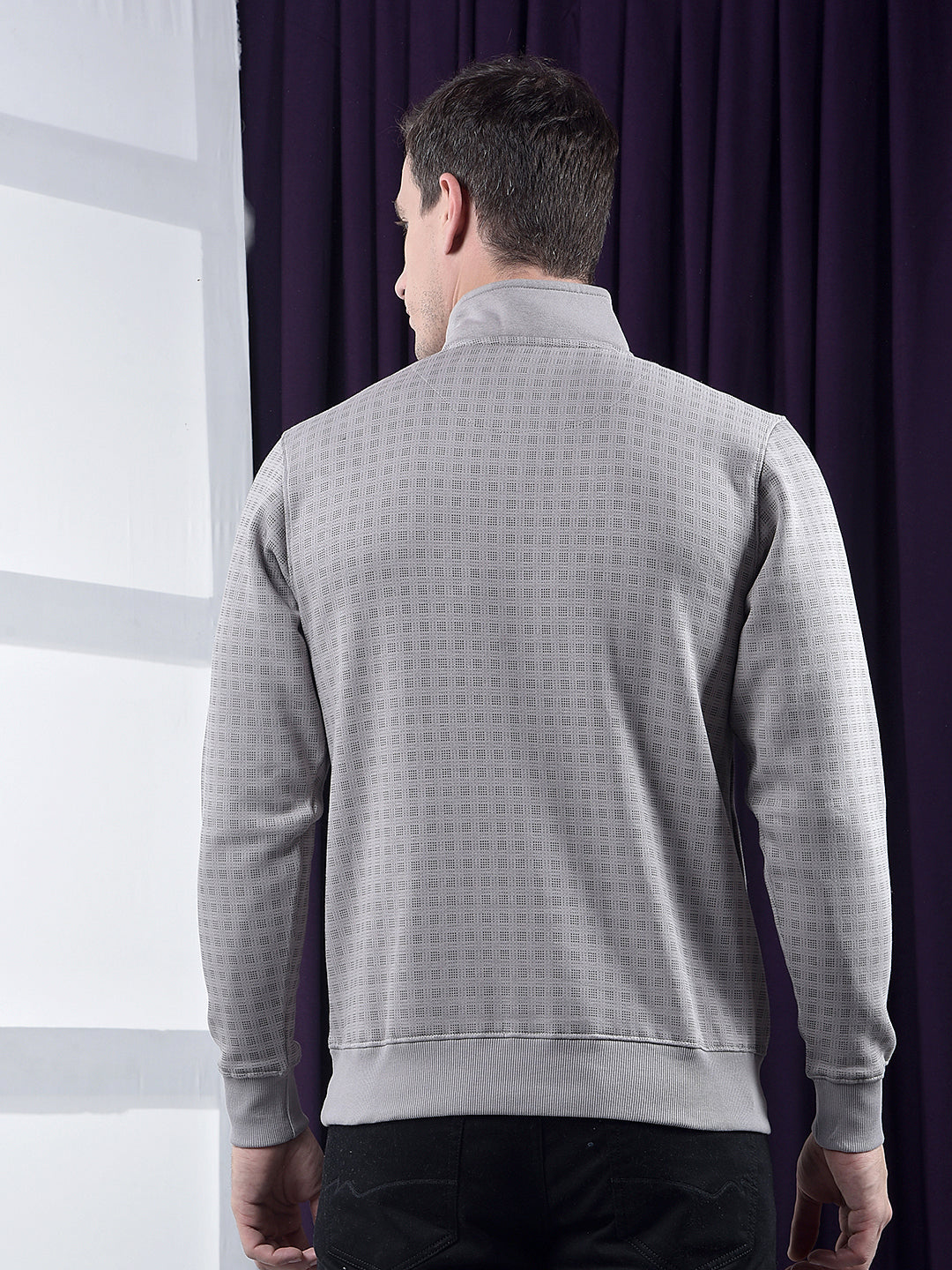 COBB LIGHT GREY PRINTED HALF-BUTTON SWEATSHIRT