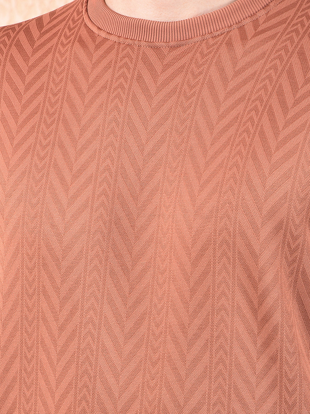 Brighten your look with COBB Orange Self-Design Round Neck Sweatshirt — vibrant style fused with cozy sophistication.