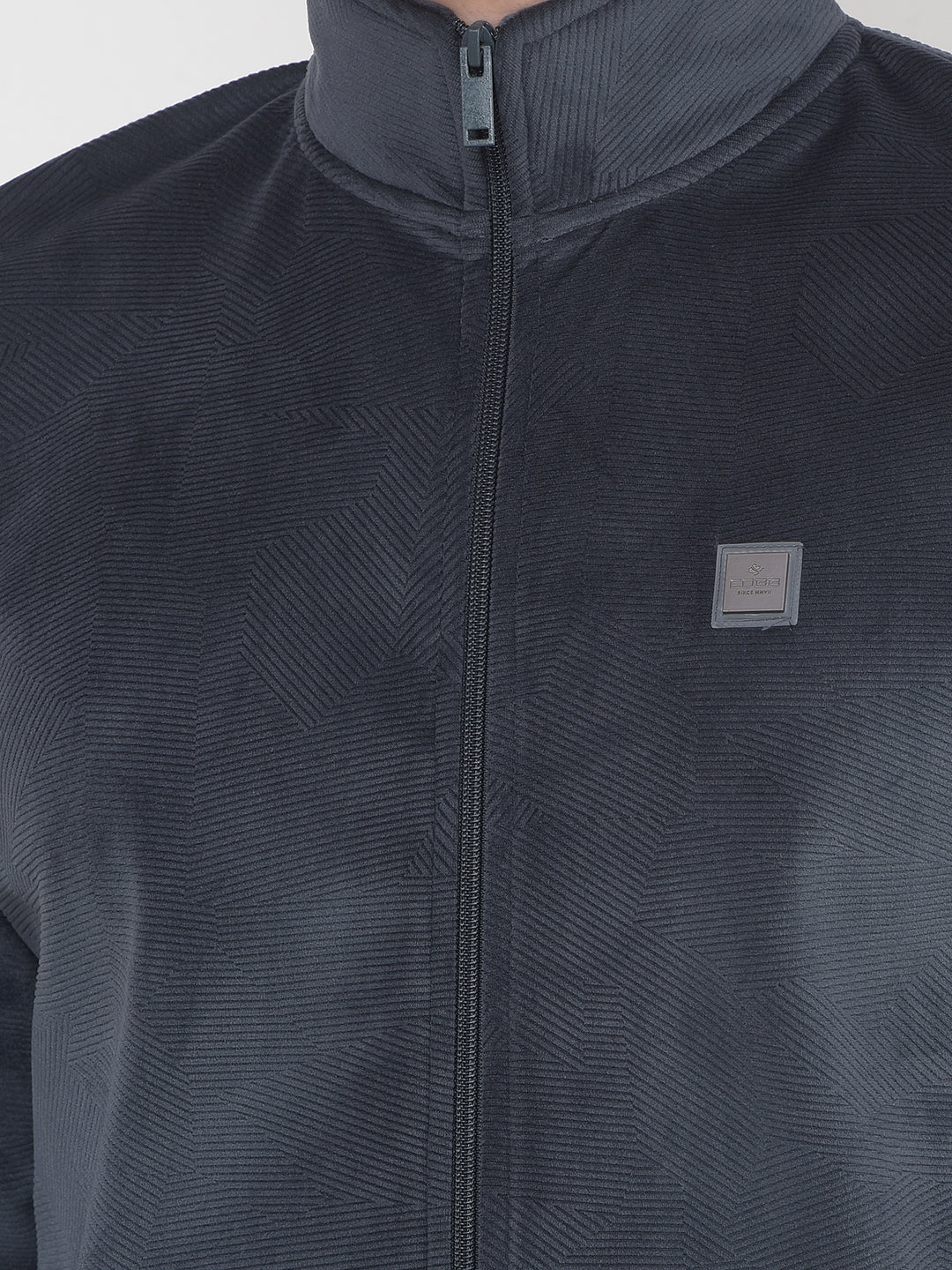 COBB DARK GREY SELF-DESIGN ZIP-UP VELVET SWEATSHIRT