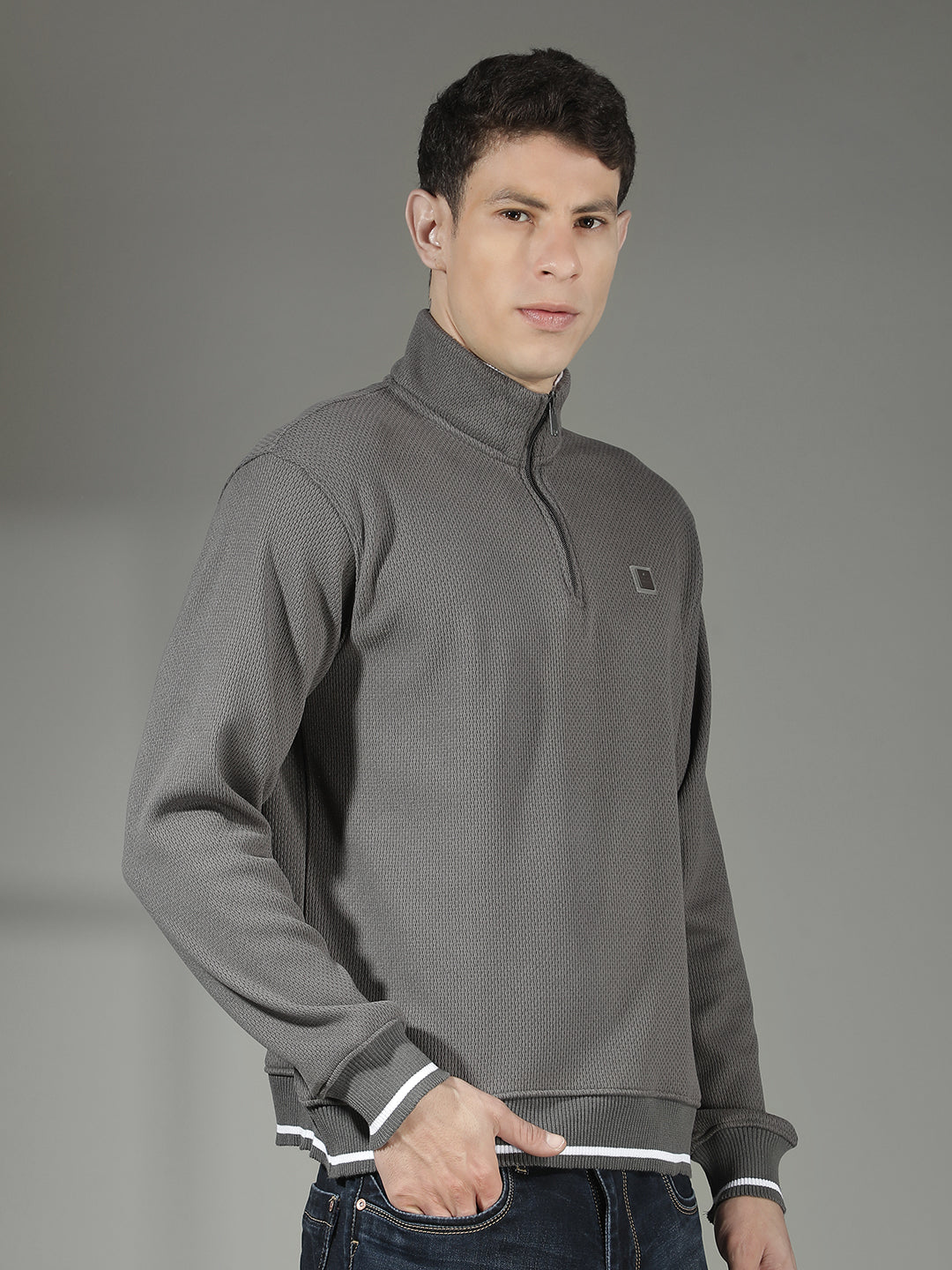COBB GREY SELF-DESIGN HALF-ZIPPER SWEATSHIRT