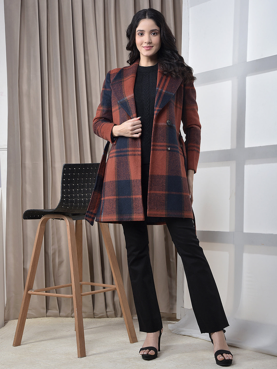 MISS FOREVER RUST CHECKED PREMIUM LONG COAT