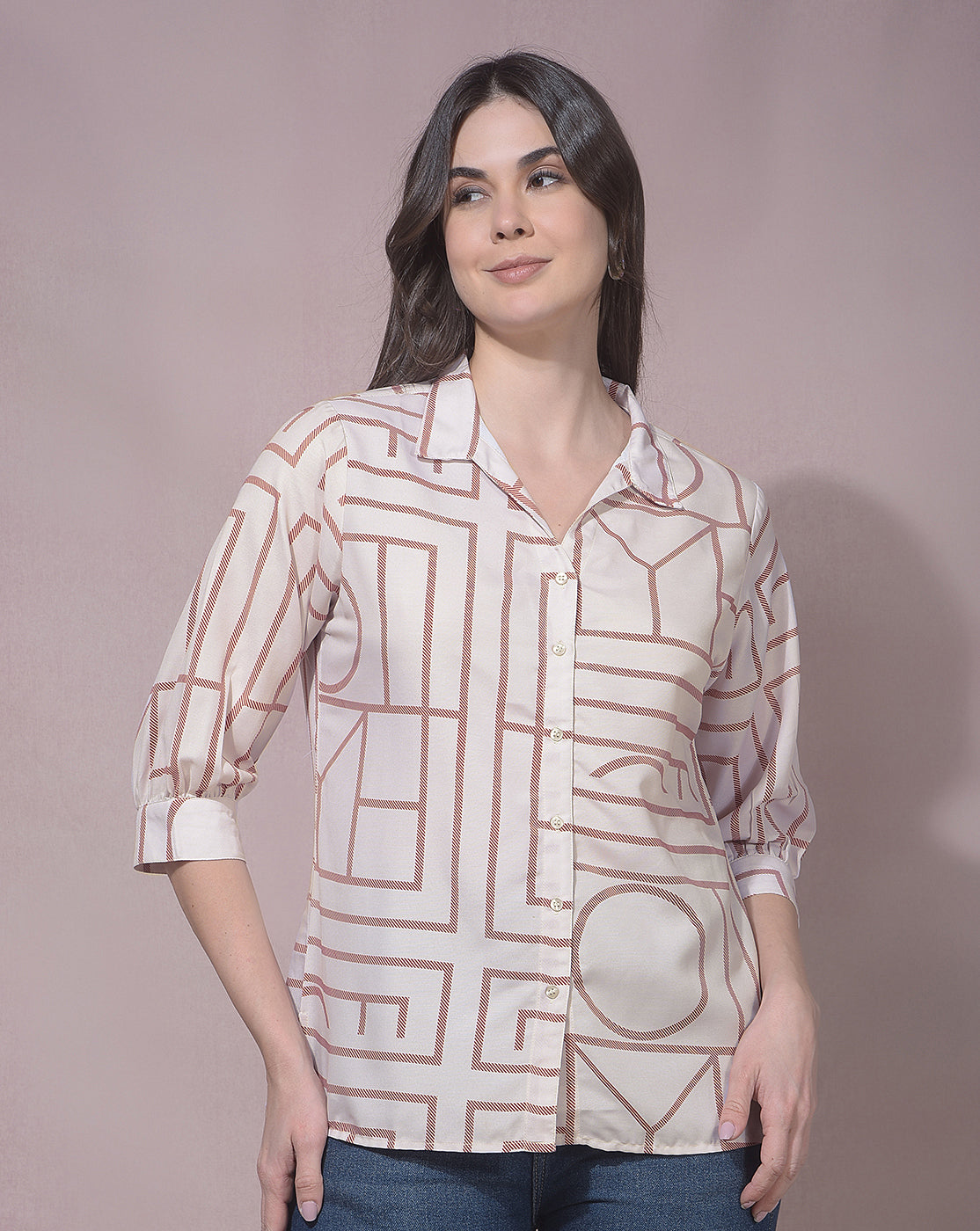MISS FOREVER OFF WHITE PRINTED CASUAL SHIRT