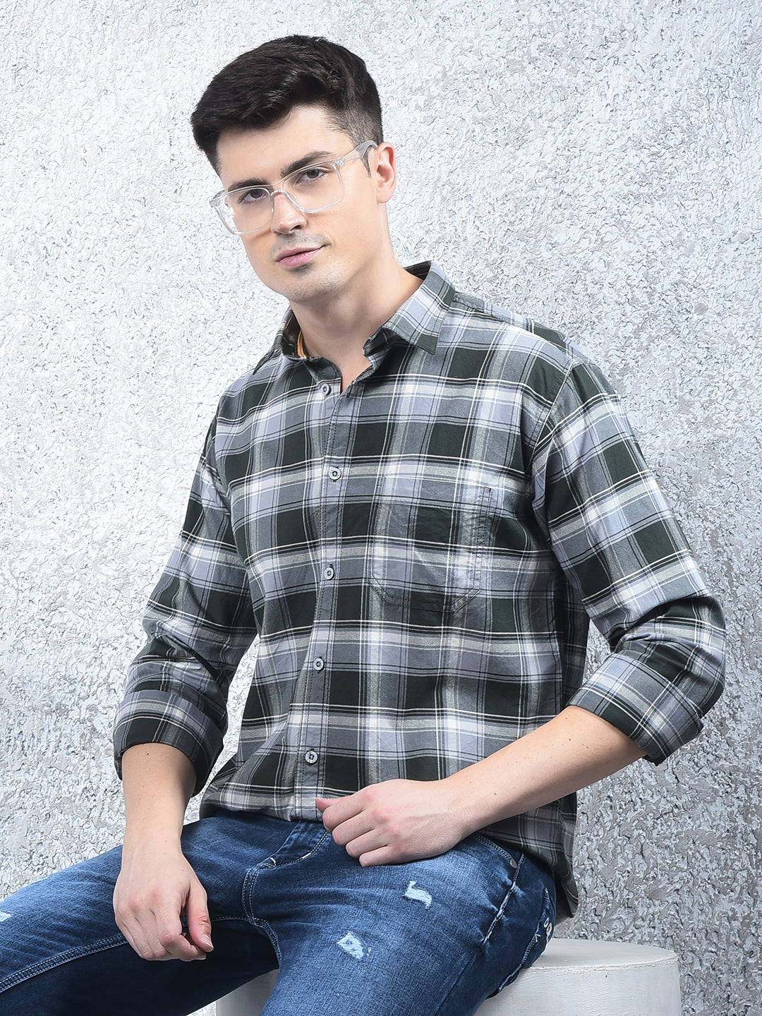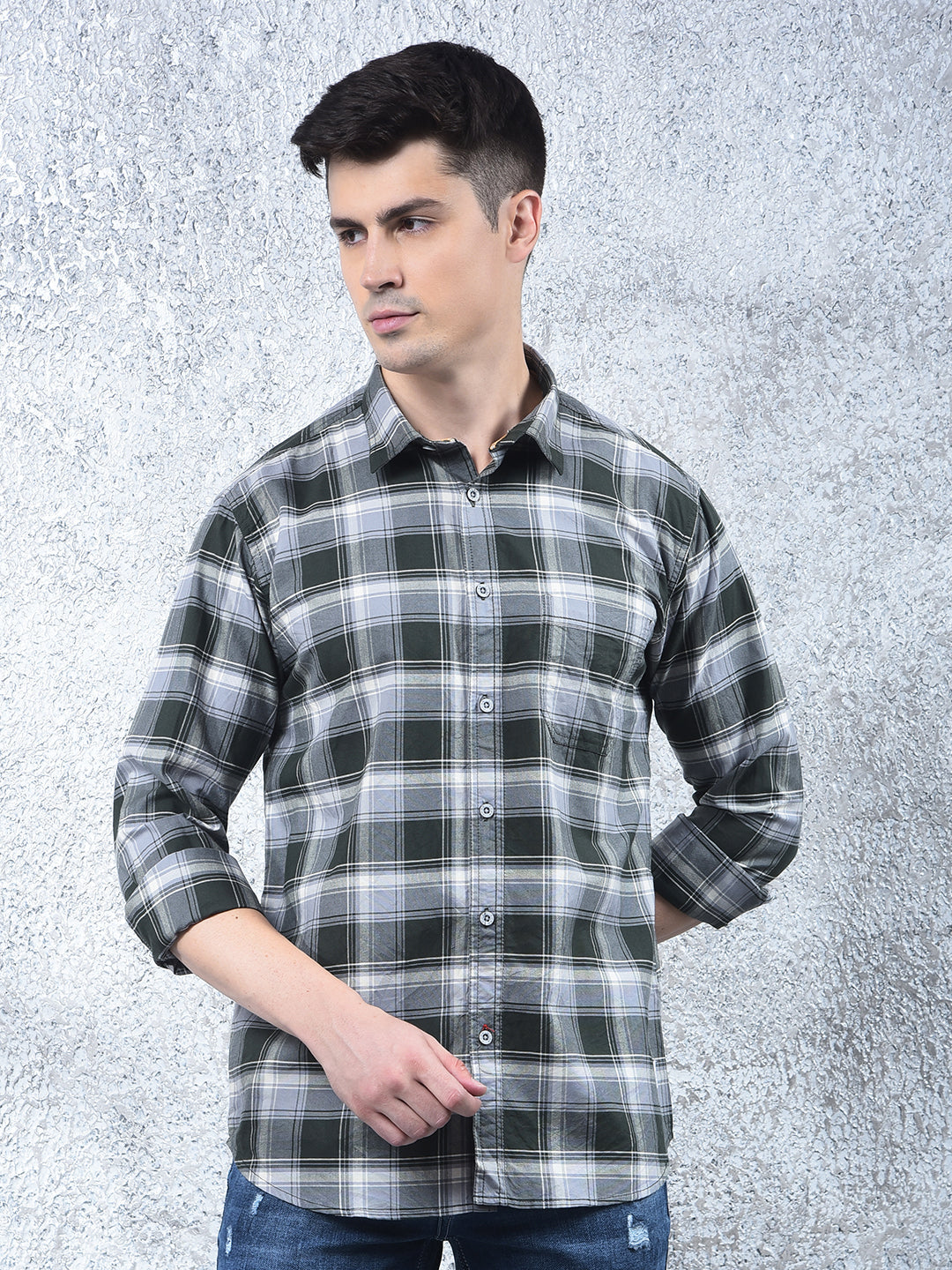 COBB Dark Green Checked Casual Shirt – crafted with premium cotton, slim-fit design, and classic check pattern. Perfect for casual outings, offering both comfort and a smart, stylish look.