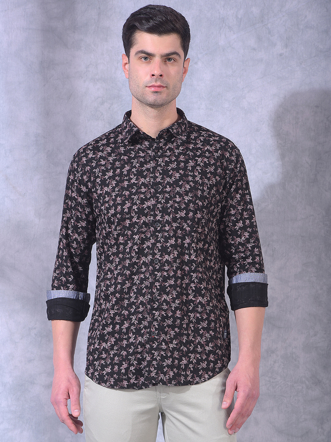 COBB BLACK PRINTED SLIM-FIT CASUAL SHIRT