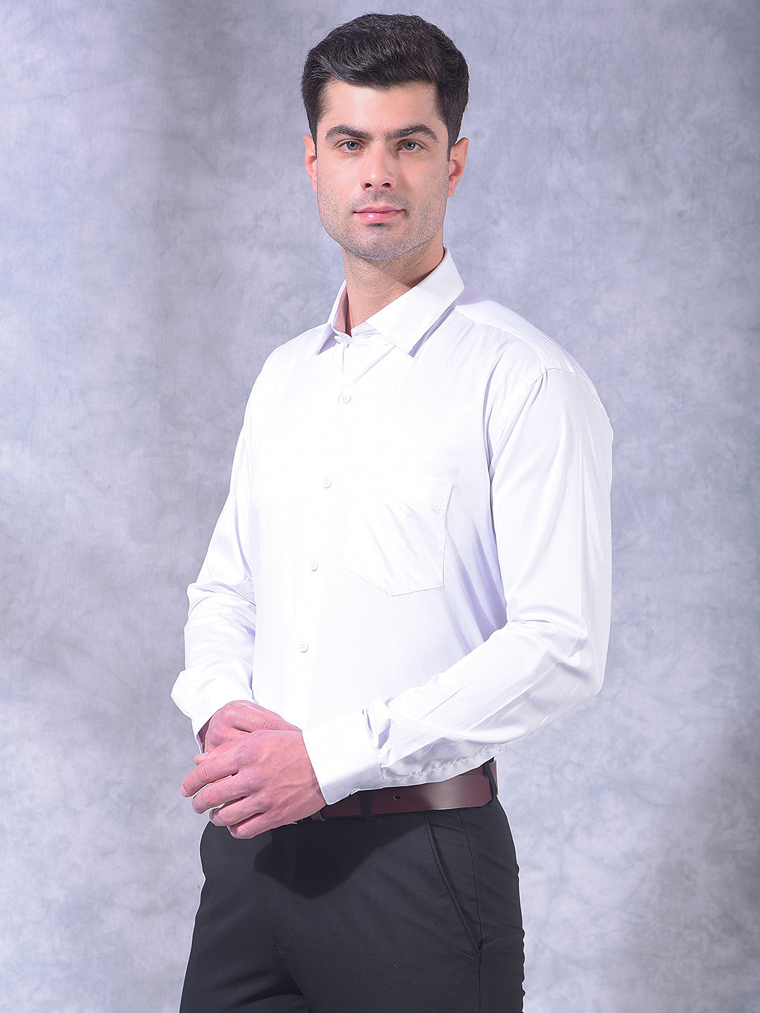 DONLAY WHITE SOLID SLIM-FIT FORMAL SHIRT