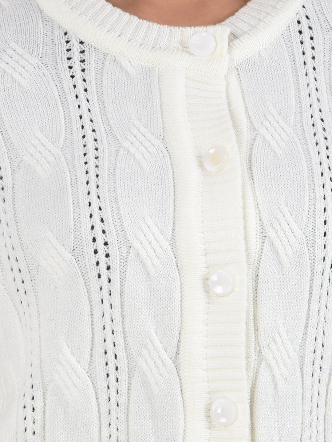MISS FOREVER OFF WHITE SELF-DESIGN SWEATER
