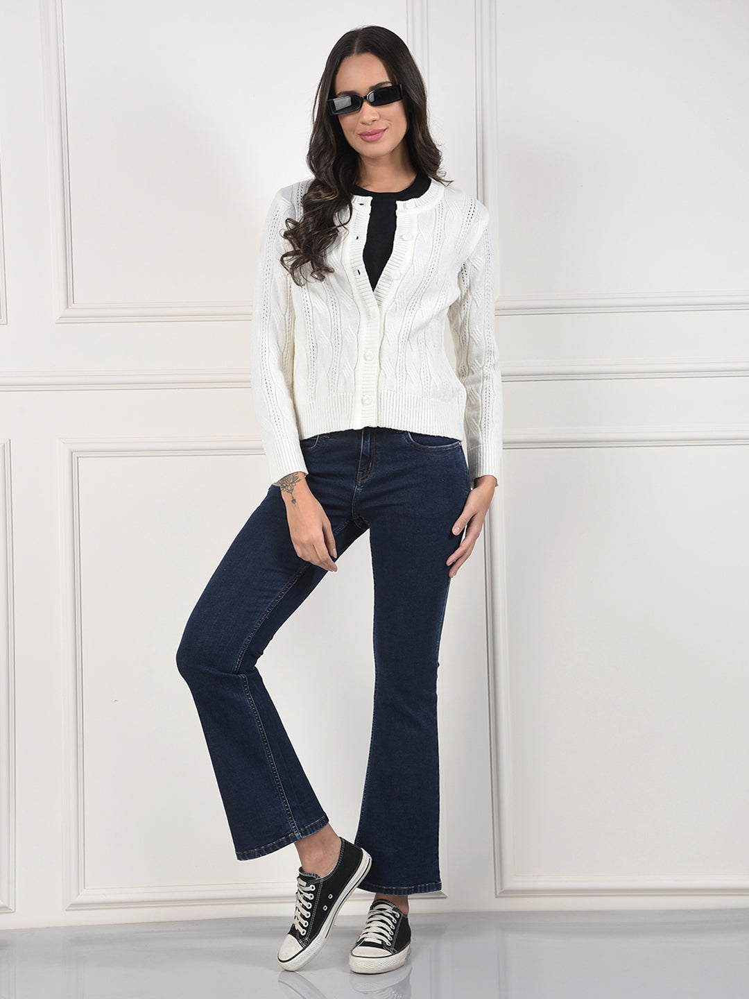 The Miss Forever Off White Self-Design Sweater combines classic elegance with cozy comfort, making it a versatile piece for effortless style in any season.