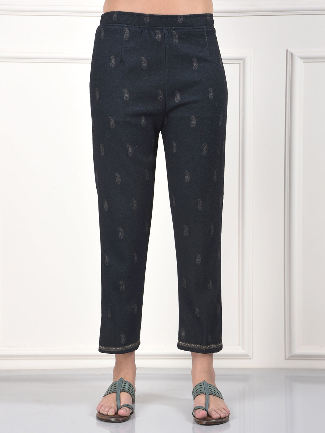 MISS FOREVER DARK GREY PRINTED WINTER KURTI PLAZO WITH STOLE