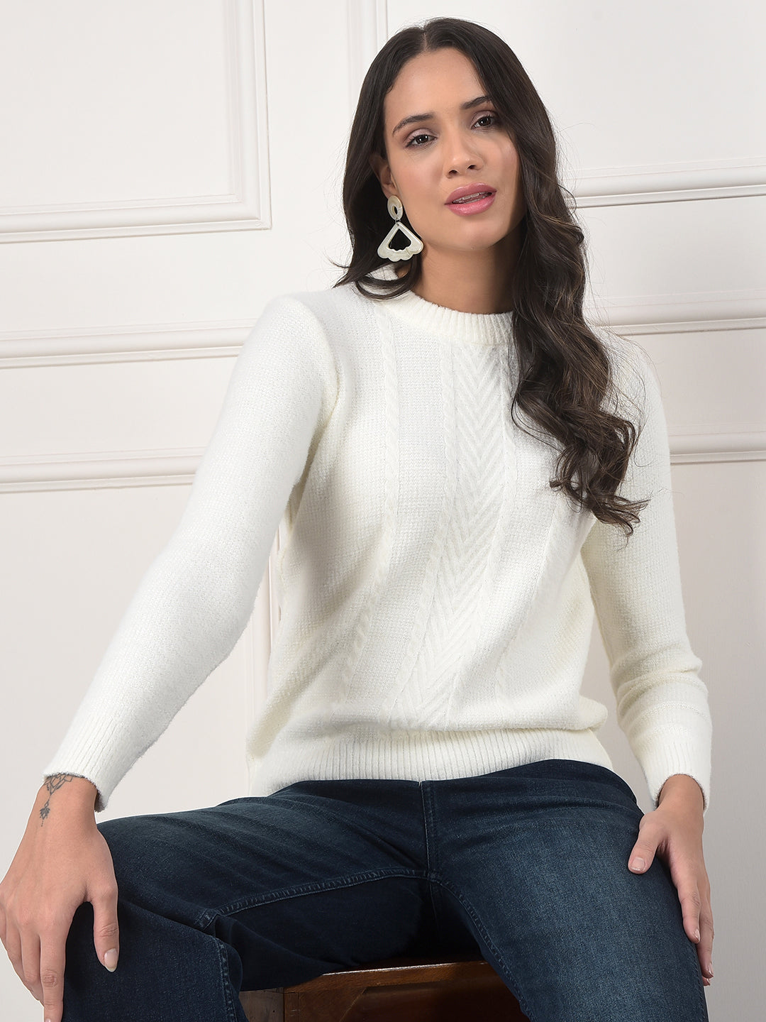 MISS FOREVER CREAM SELF-DESIGN SWEATER